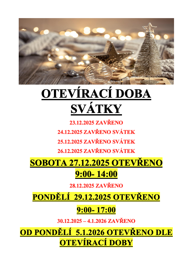 OD PONDĚLÍ 5. 1. 2026 OTEVŘENO DLE OTEVÍRACÍ DOBY